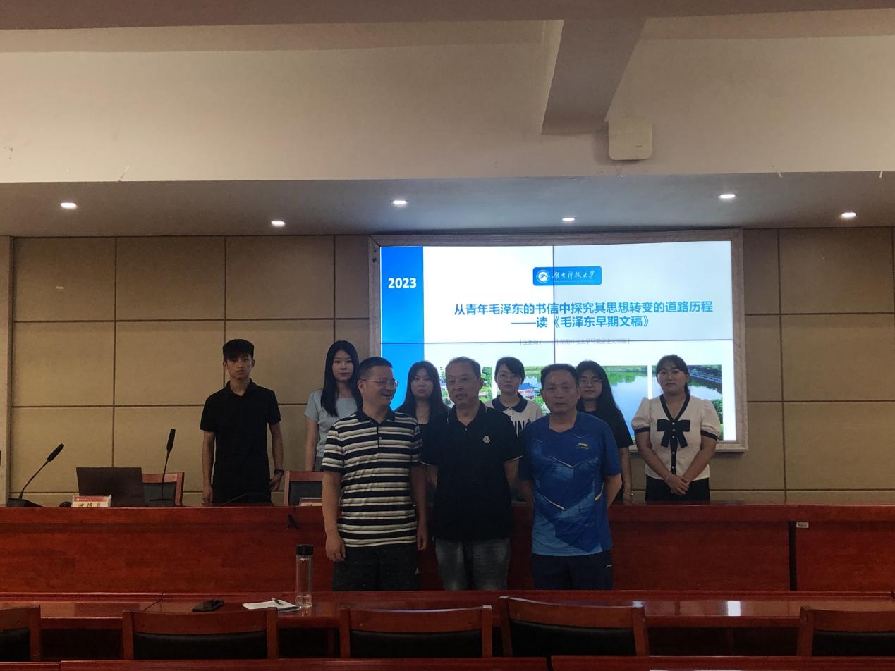 王贵潮同学从《毛泽东早期文稿》中,探寻青年毛泽东书信中的思想转变历程,特别注意了青年毛泽东书信中的价值情感。卢思彤同学,选取了中国近现代史领域著名学者黄道炫的一篇文章:《洗脸——1946年至1948年农村土改中的干部整改》,对该文的行文思路进行了重点阐述。刘子涵同学从政治学和历史学研究相结合的思路出发,选取著名学者徐勇的文章:《“政党下乡”:现代国家对乡土的整合》,对“共产党为什么能”这个重大问题进行深度思考。汤驭婷同学分享了一篇关于著名民族学学者马戎解析研究热点“差序格局”的文章:《“差序格局”——中国传统社会结构和中国人行为的解读》,对“差序格局”这一社科热点概念进行了解读。李洁同学选取了徐勇的另一篇文章:《论城市社区建设中的社区居民自治》,为我们详细介绍了城市社区居民自治的渊源。最后,肖小蝶同学分享了知名学者葛玲一篇关于中国共产党政治动员文章:《新中国成立初期皖西北地区治淮运动的初步研究》,对于新中国成立初期皖西北地区治淮运动进行了全过程解析,突出中国共产党是如何实现政治动员的问题,并提出自己的思考。此次读书报告会属于不同学科的论著,旨在通过阅读各学科的经典,了解不同学科思维方式、问题意识和研究视角,进而为属于马克思主义理论下的中国近现代史基本问题研究提供借鉴。