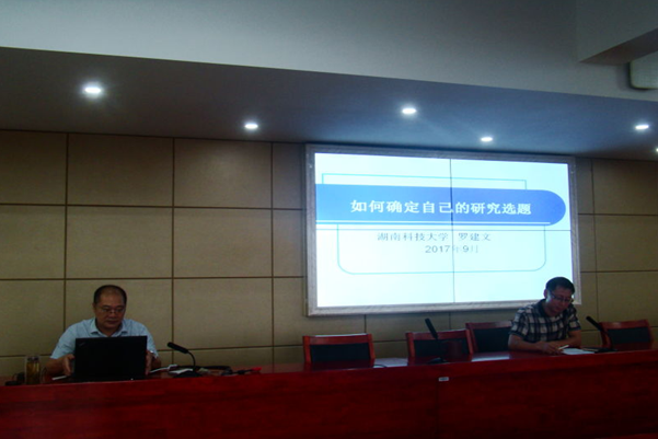 2017年9月12日下午,我院罗建文教授在文科楼A5-1报告厅作了题为“如何确定研究选题”的报告。报告会由永利yl23411副院长兼党委副书记刘大禹教授主持,永利yl23411部分老师及全体硕、博研究生参加,论坛还吸引了法学与公共管理学院、人文学院的部分师生前来参加。