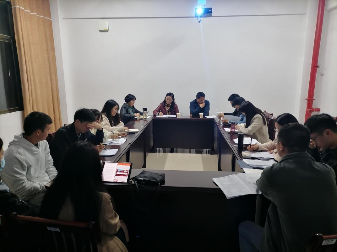 为了推动研究生从经典著作中把握马克思主义理论的真谛,不断提高马克思主义理论水平,提升分析和解决问题的能力,我院2020级马克思主义中国化研究方向读书报告会于2021年10月29日晚在立功楼B506举行。廖和平老师、杨松菊老师和杨大容老师莅临指导,2020级马克思主义中国化研究方向全体研究生参加。