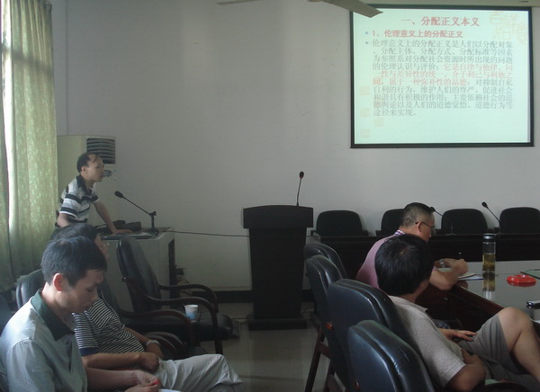 吴怀友教授在点评和总结中说,马克思分配正义理论,具有丰富的思想内涵和鲜明的价值取向,是科学社会主义基本原则之一,对新时期全面深化改革、全面建成小康社会具有重要的现实指导意义。朱教授凭借其扎实的文献功底,不仅全面阐释了马克思分配正义思想,而且论述了马克思研究分配理论的原则方法,对我们从事马克思主义理论研究很有启发。