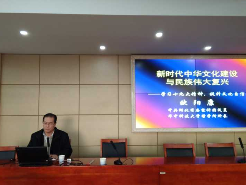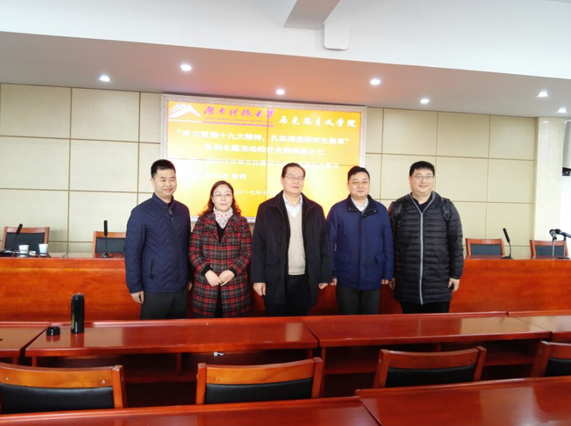 2017年12月25日上午,马克思主义理论学科评议组专家,华中科技大学原党委副书记,华中科技大学国家治理研究院院长欧阳康教授应邀来我院进行题为“新时代中华文化建设与中华民族伟大复兴”的讲座,此次讲座是学院“学习贯彻党的十九大精神,扎实推进研究生教育”系列主题活动校外名师讲座之七。学院院长吴怀友教授主持讲座。