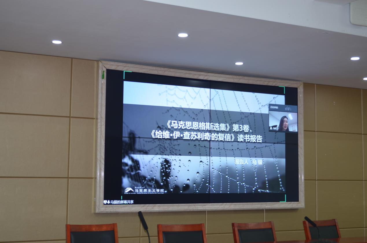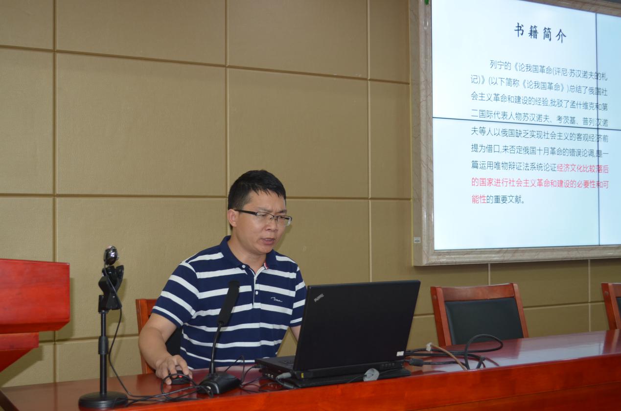 报告会上,首先由马银博士分享她阅读《马克思恩格斯选集》第3卷中《给维.伊.查苏利奇的复信》的感受,她从马克思解析人类社会发展规律的五部重要文献入手,以《复信》内容为开端,重点讲述俄国进行社会主义革命的历史背景及其历史必然性,最后对文献进行自己的逻辑思考。其次是董伟博士分享了他最近阅读的列宁《论我国革命(评尼.苏汉诺夫的札记)》一书,他以经济文化落后的俄国能否进行社会主义革命这个核心问题为出发点,总结了俄国社会主义革命和建设的经验,批驳了孟什维克和第二国际代表人物以俄国缺乏实现社会主义的客观经济前提为借口否定俄国十月革命的错误论调,并用唯物辩证法系统论证了经济文化落后的国家进行社会主义革命和建设的必要性和可能性。然后是张丽博士分享《有法和无法—清代的州县制度及其运作》一书的感悟,她首先明确界定“有法”和“无法”的概念,并对清代州县的治理结构进行详细阐述,最后希望我们学习作者严谨、求实的治史治学的态度。最后进行分享的是腾茜茜博士,她从作者简介、内容介绍、本书评价以及读书感悟四个部分和大家交流了她在阅读《政治道德论》一书时的所思所感,她以“政治是否有道德”这一问题开场,重点讲述政治道德的思想渊源、主体约束以及当代中国政治道德建设的不足。