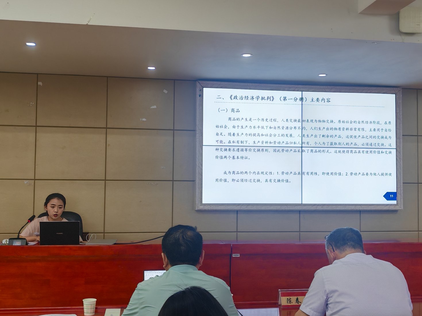 李诗芹全面梳理了马克思《政治经济学批判》第一分册的主要内容和当代价值,分析了马克思从政治批判转向政治经济学批判的原因,她还从马克思主义政治经济学的货币理论角度剖析白银贸易同中国近代发展历程的关系。明鸿桢整体性考察了《共产党宣言》的写作背景、主要内容和当代启示,从新时代视域重新阐释该著作并分享了学习体会。徐淑芳以马克思唯物史观叙事的视觉形象呈现为切口解读马克思《路易·波拿巴的雾月十八日》,表示通过学习,深化了其对马克思唯物史观的规律性认知。苏婵基于思想政治教育方向研读列宁《共产主义运动中的“左派”幼稚病》,对原著文本的写作背景和基本观点进行了解读。