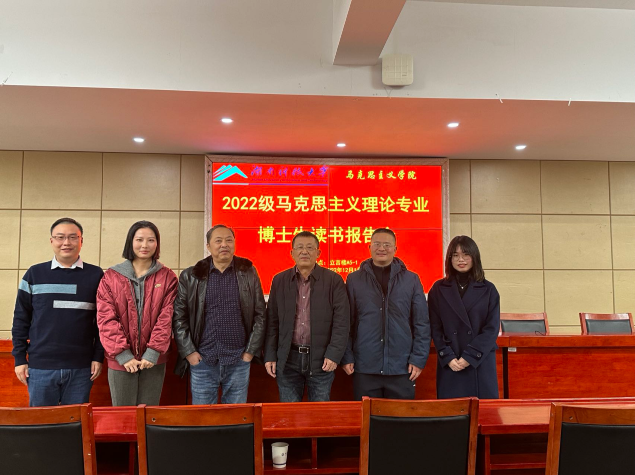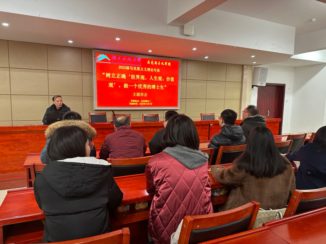 2022年12月1日晚,永利yl23411马克思主义理论2022级博士研究生读书报告会于立言楼A529和A5-1两个会场举行,读书报告会结束后于立言楼A5-1举行了主题为“树立正确‘世界观、人生观、价值观’,做一个优秀的博士生”的主题班会。此次读书报告会由朱春晖教授主持,李海萍教授、吴毅君教授、米华教授和黄利新教授任点评嘉宾,我院2020级、2021级博士研究生共同参与学习。