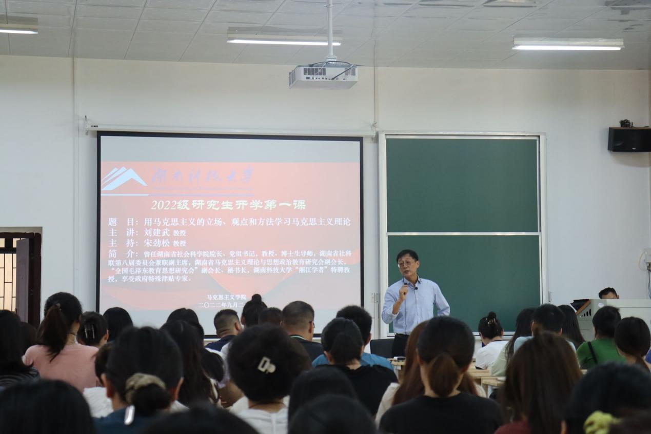 9月29日下午,我校特聘教授、博士生导师刘建武教授为永利yl234112022级研究生主讲开学第一课——用马克思主义的立场、观点和方法学习马克思主义理论。