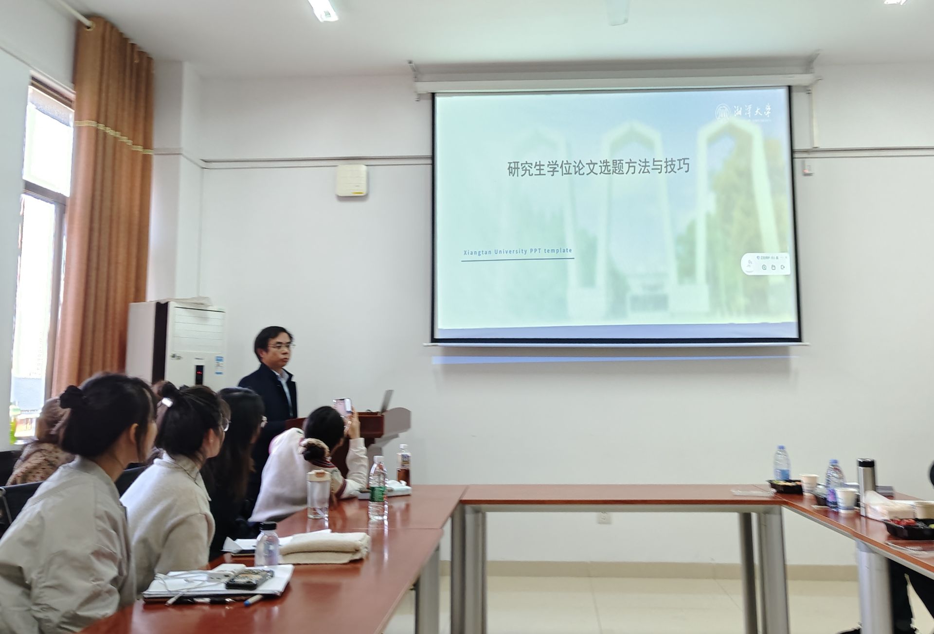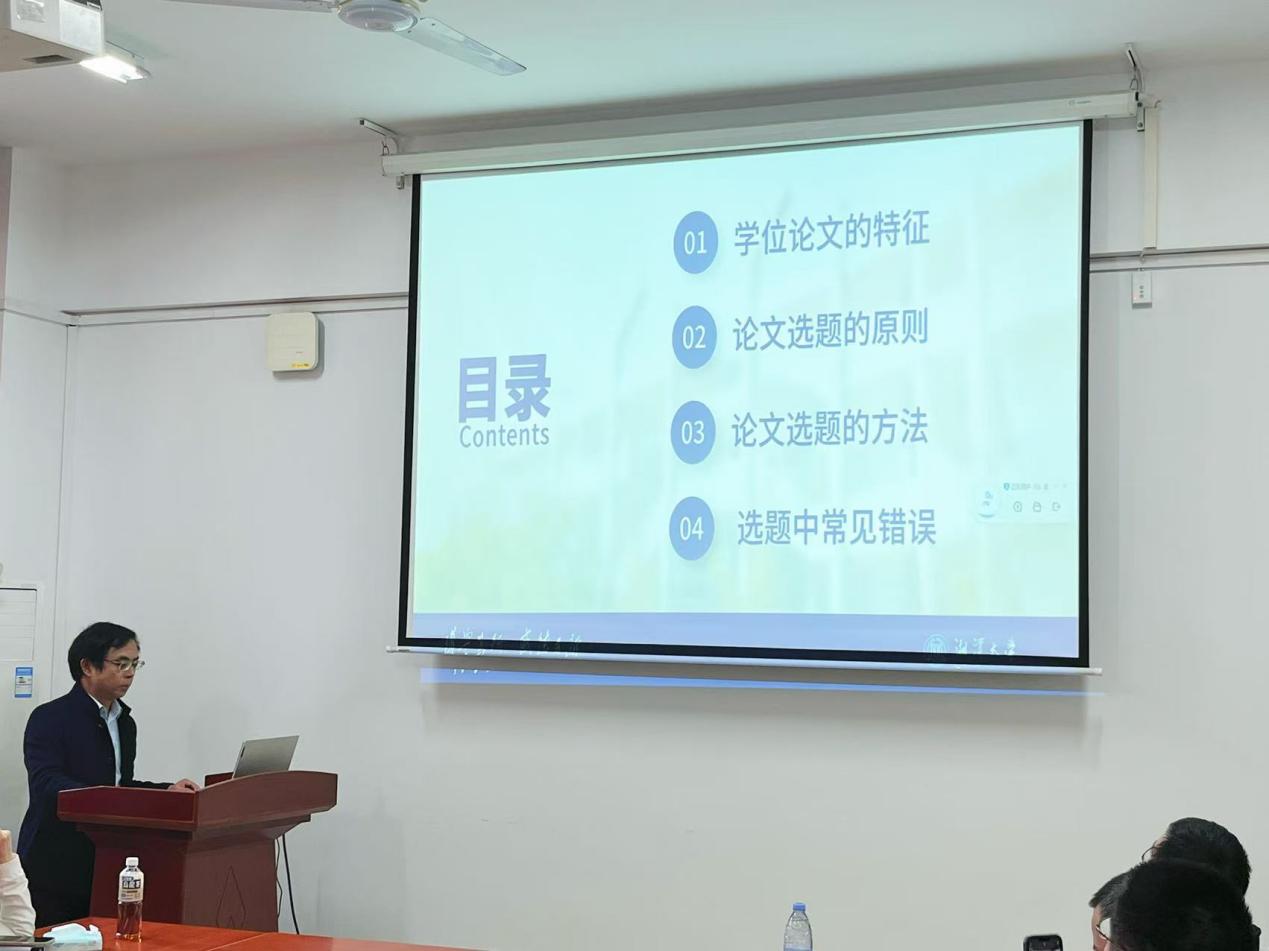 11月30日下午14:30-16:30,湘潭大学哲学与历史文化学院暨碧泉书院院长张今杰教授应邀在立言楼A630为哲学专业全体师生做了一场题为《研究生学位论文选题方法与技巧》的专题讲座。讲座由哲学一级学科硕士学位点负责人颜中军教授主持。