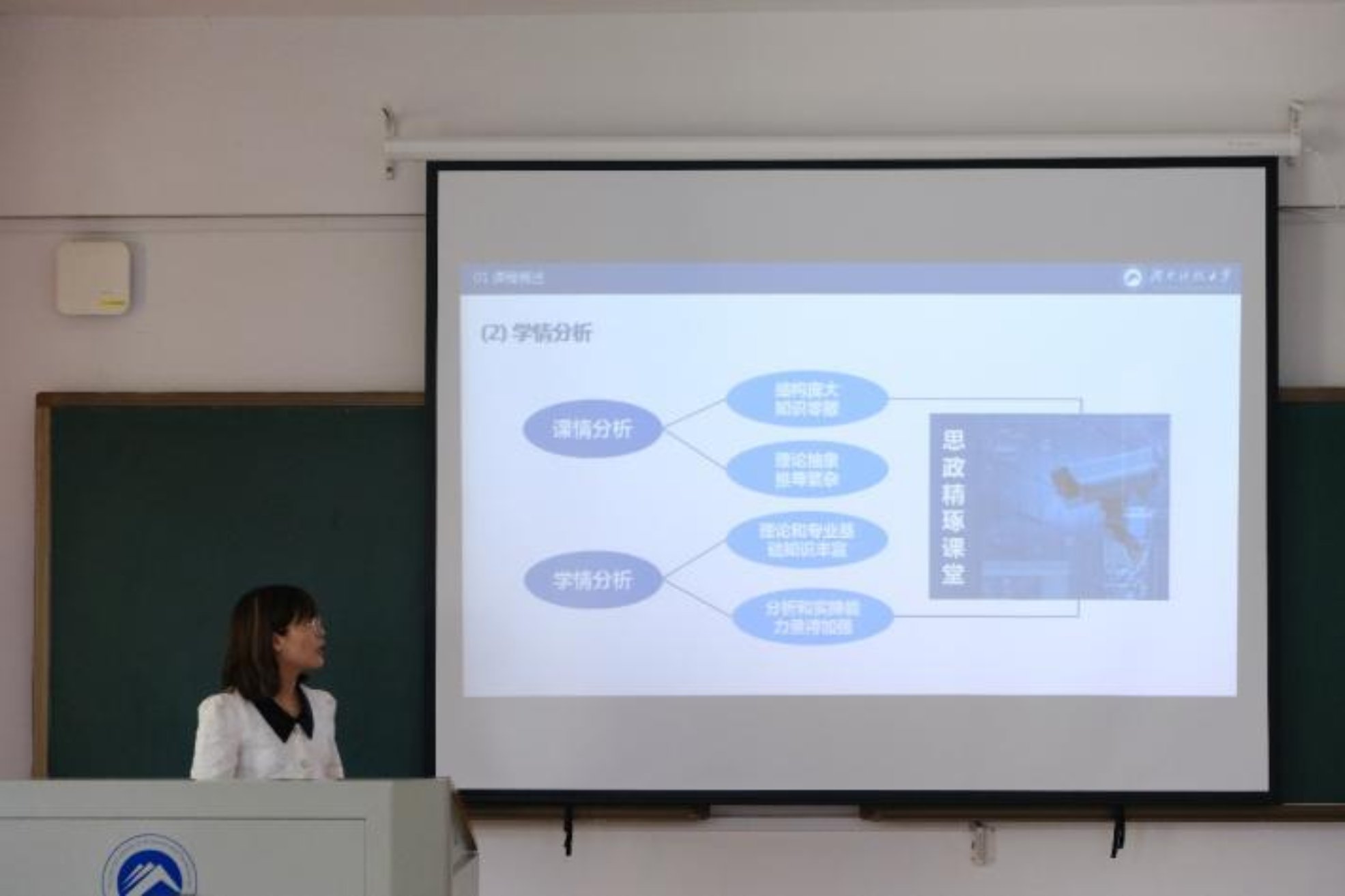 本次比赛由课程设计展示与评委老师现场提问两个主要环节构成。七位参赛教师说课思路清晰,授课方式新颖,对专业知识把握到位,并能够立足各自专业特色融合、挖掘思政元素,在短短二十分钟内,从内容到形式,展现了课程思政的教学理念以及娴熟、新颖的教学技能。