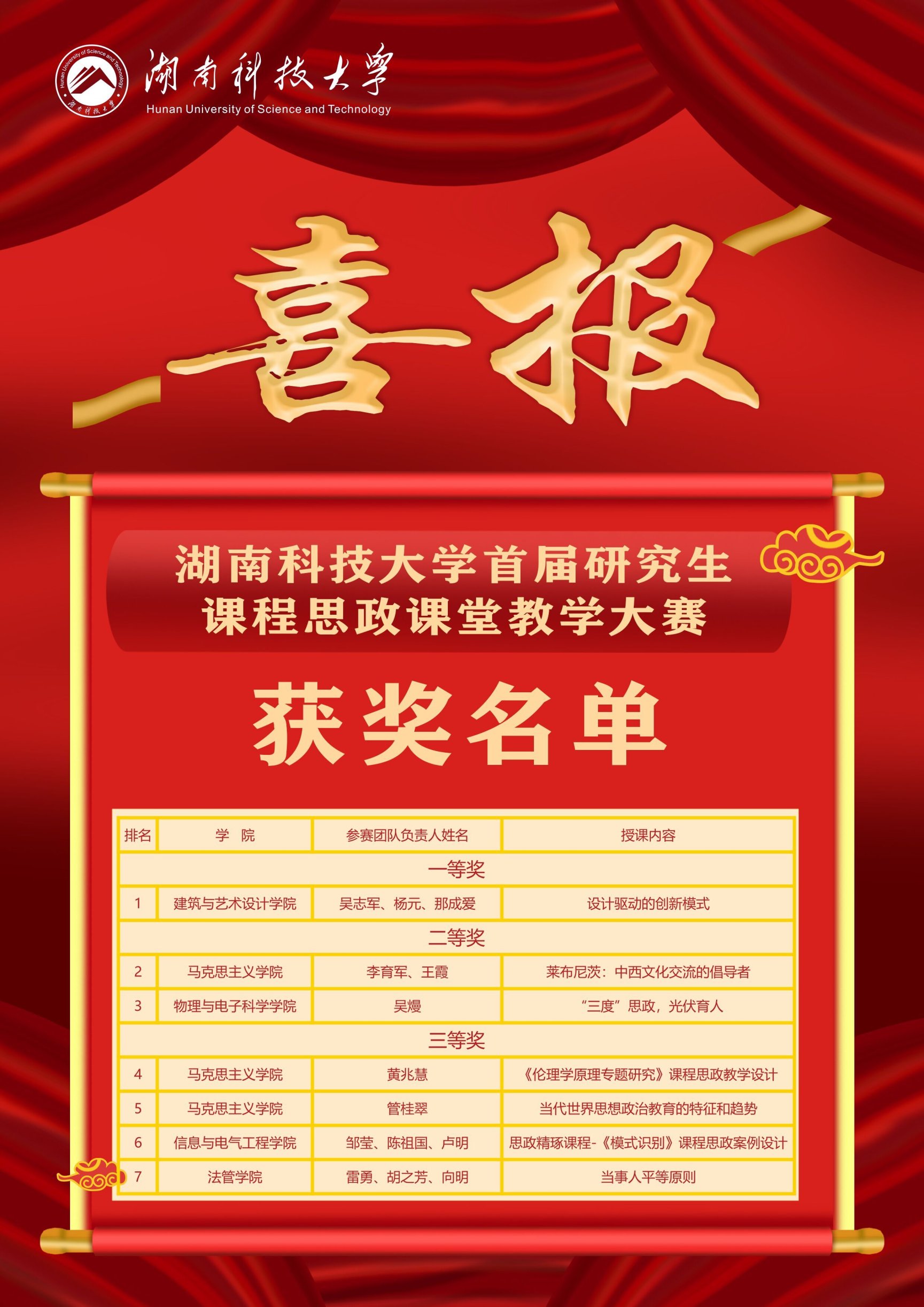 为深入贯彻落实习近平总书记关于研究生教育的重要论述和全国、全省研究生教育会议精神,推进我校研究生课程思政建设,首届湖南科技大学研究生课程思政课堂教学比赛于6月27日举行。本次比赛由在永利yl23411承办。