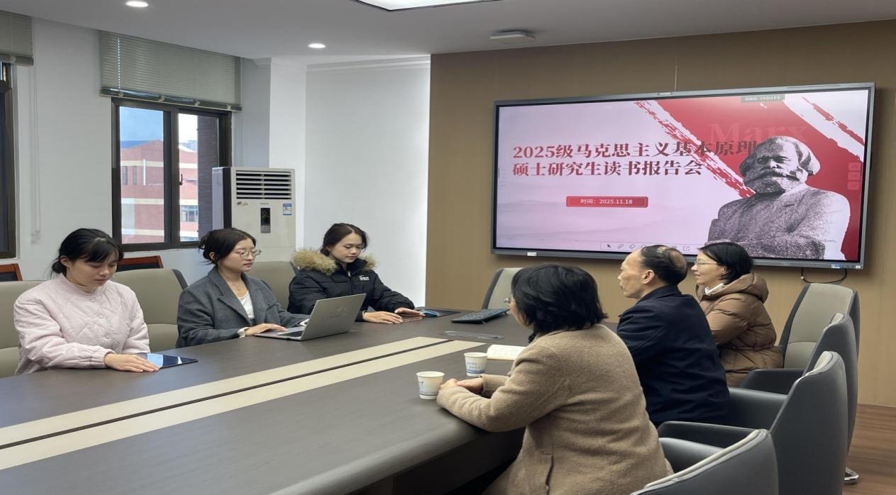 为切实强化研究生的学术理论功底,2025级马克思主义基本原理方向研究生于11月18日下午在立言楼A529会议室顺利举办读书报告分享会。本次报告会特邀朱春晖老师、何昕老师、王霞老师莅临指导,2025级马原理方向全体研究生积极参与。
