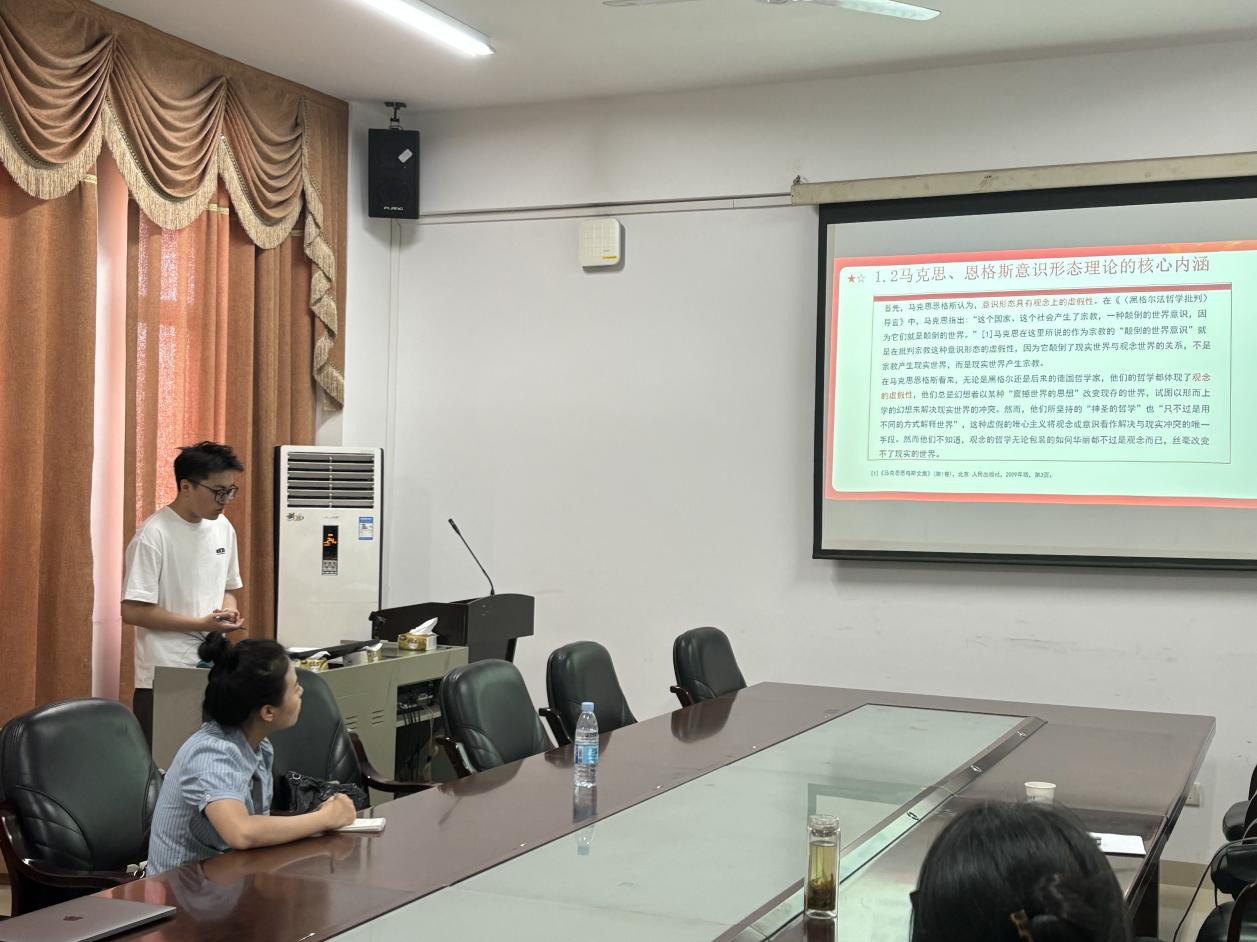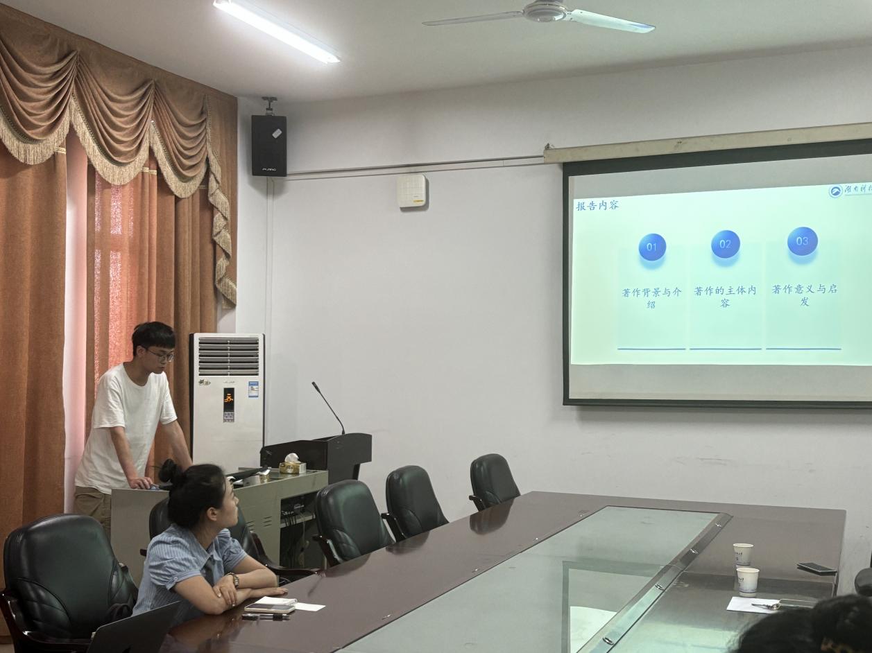 书籍是文明传承的重要载体,是人类进步的阶梯。卷帙浩繁的书籍中,智慧光芒穿透历史、思想价值穿越时空。马克思主义经典著作历经岁月磨砺,始终闪耀着真理的光芒。为推动研究生更好地读原著、学原文、悟原理,更深刻地体会马克思主义,我院2023级马克思主义基本原理方向研究生于5月14日下午在立言楼A529会议室举行读书报告会。此次读书报告会由李若晨同学主持,朱春晖老师、罗建文老师、何昕老师、肖蓉老师莅临指导,2023级全体马克思主义基本原理方向研究生参加。