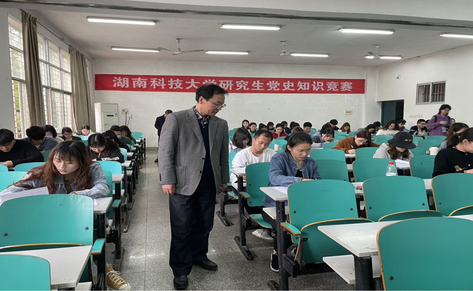 为加强学生学习党史积极性,提升党员党性修养,深入贯彻落实习近平总书记在党史学习教育动员大会上的重要讲话精神,引导我校研究生学习回顾中国共产党百年奋斗史,提高党史学习素养。4月20日下午,由我校研究生院(部)主办,我院承办的主题为“学史爱党 报国力行”研究生党史知识竞赛在九教106教室顺利举行。本次知识竞赛以学院为单位,共有19个学院参与,经各学院选拔后共计76名同学参加了此次竞赛。研究生院(部)高文华院(部)长,曾治国副院(部)长及各学院教师代表莅临比赛现场。