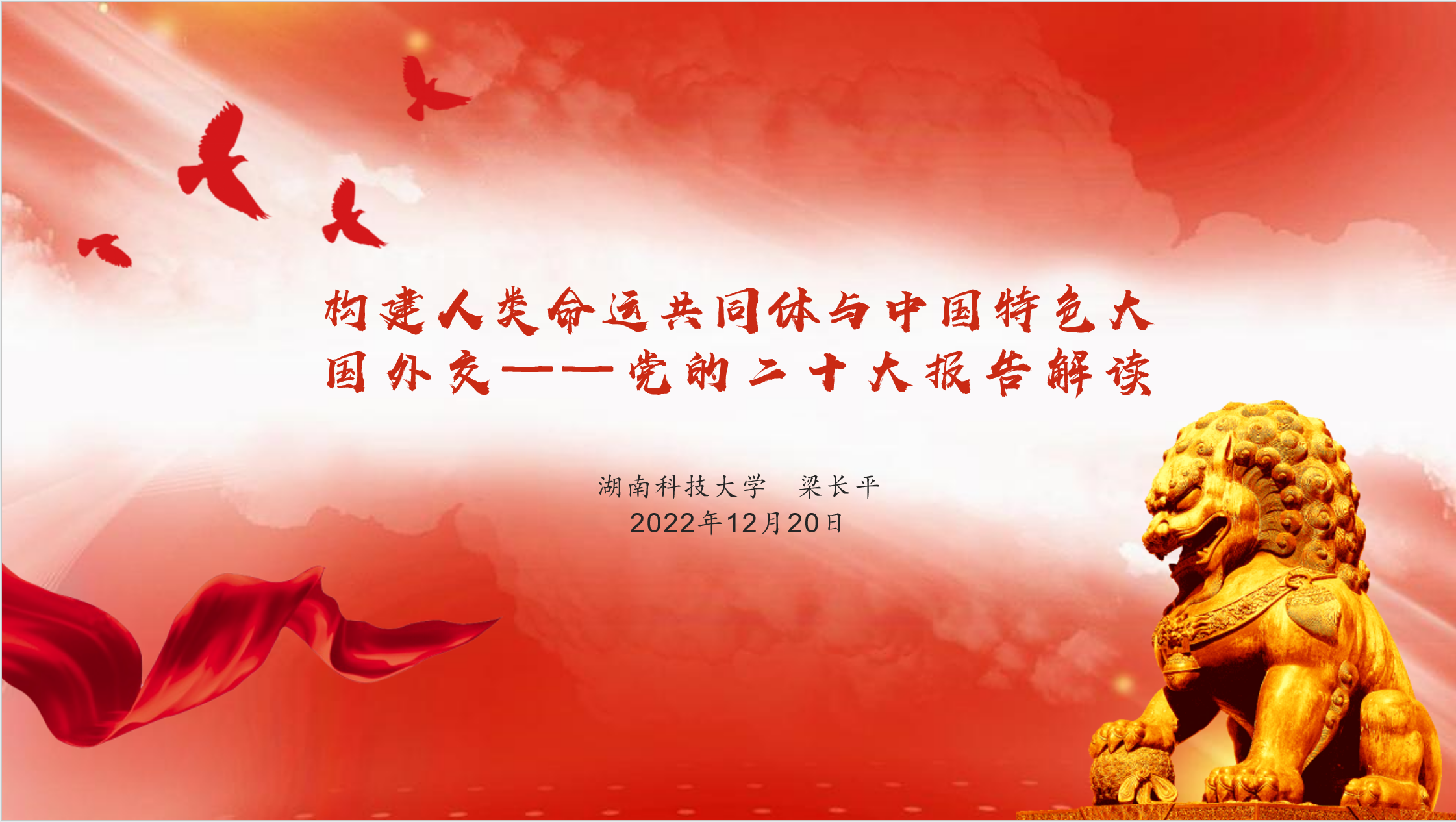 本次报告分为两个阶段。第一阶段,由21级硕士研究生刘莎、邝舜、田菁三位同学分享自己的读书体会。刘莎同学以《把握历史主动 增强前进动力》为题,深刻阐述了中国共产党掌握历史主动的前提、动力和路径,解析了掌握历史主动的内在机理以及历史主动与三次伟大飞跃的演进关系。邝舜同学以《以高质量发展推进中国式现代化》为题,对党的二十大报告中提出的中国式现代化的特征、本质要求和战略安排进行了分析,阐述了高质量发展的内涵、目标和重点以及与中国式现代化的联系,指出以高质量发展的构成体系推进中国式现代化发展。田菁同学以《习近平关于加强和改进民族工作重要思想的创新性探析》为题,从继承马克思主义民族理论、汲取中华优秀传统文化的根脉、赓续党的民族理论政策、厘清改进民族工作的辩证关系四个方面阐述了习近平关于加强和改进民族工作重要思想的创新性。